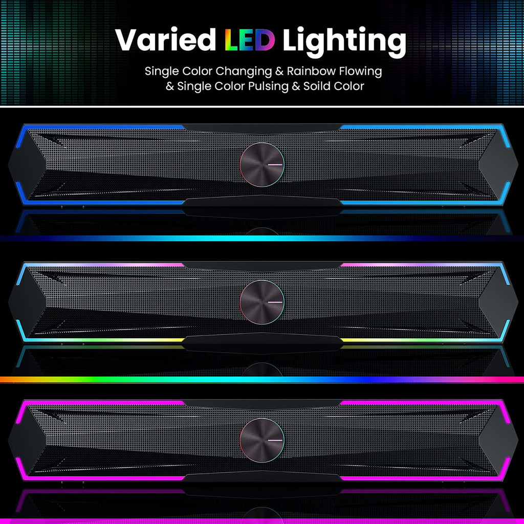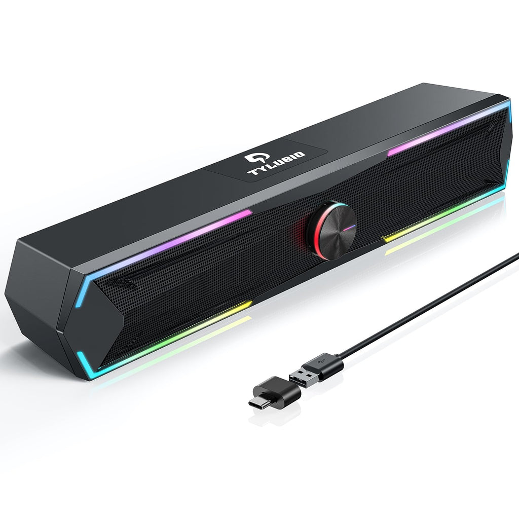 - Stereo Sound - The PC speaker uses upgraded 2x5W technology to deliver the clear sound. The soundbar speaker can enhance your listening experience when you enjoying indoor movies, videos, music and games.